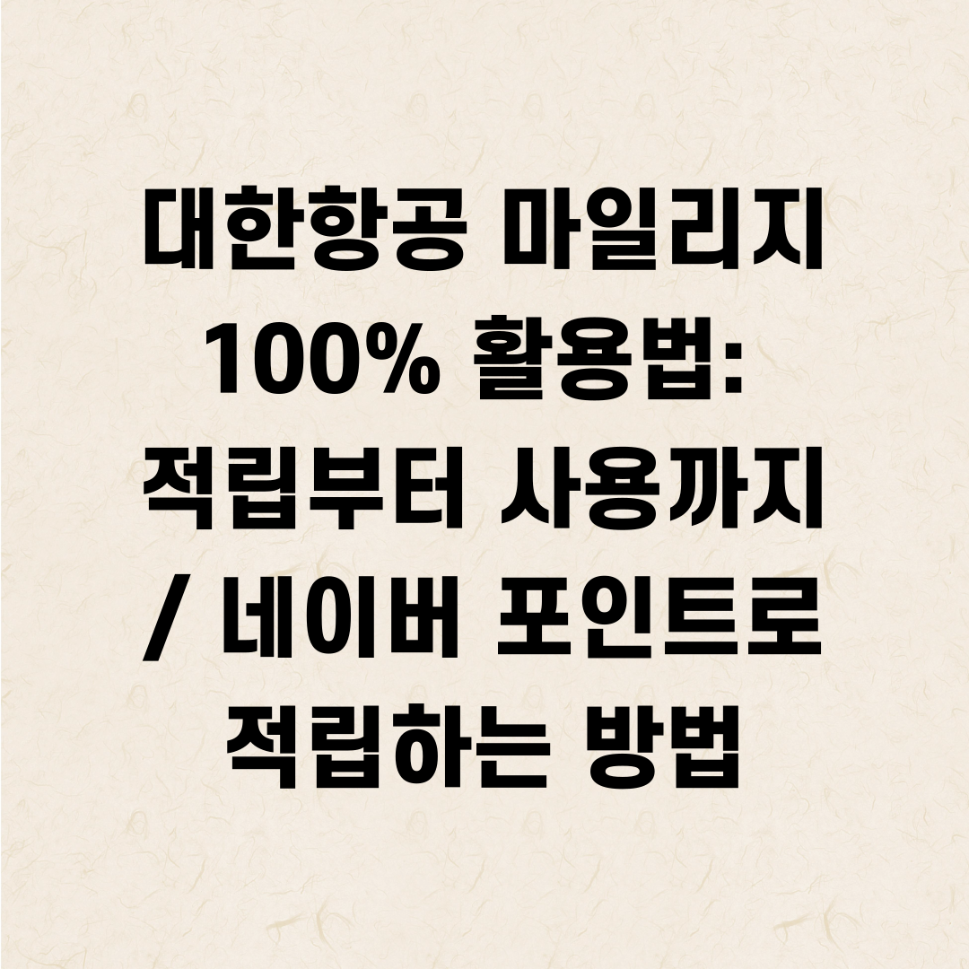 ➡ 신용카드 사용으로 네이버페이 포인트를 적립한 후, 이를 대한항공 마일리지로 전환하면 더욱 효율적으로 마일리지를 쌓을 수 있습니다!